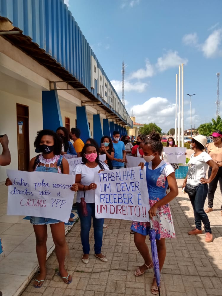 Servidores reivindicam salários atrasados e fazem manifestação em frente à Prefeitura de Pedro do Rosário