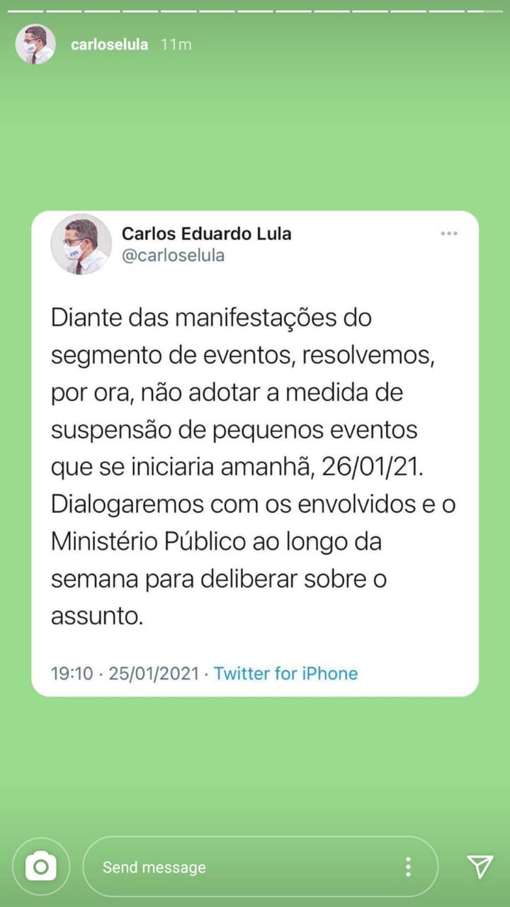 Carlos Lula volta atrás e mantém liberada festas de até 150 pessoas